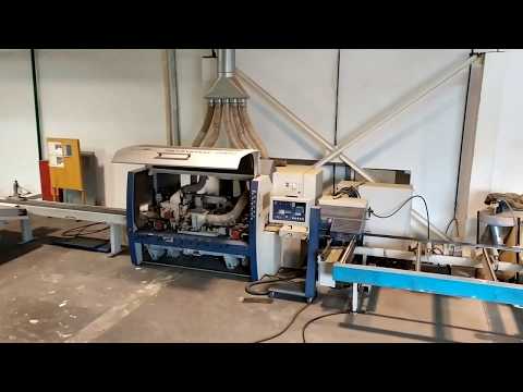 Линия оптимизация Weinig состоящая из четырехстороннего станка Hydromat 2000 и двух оптимизирующих торцовочных пил OptiCut 450 с семью толкателями после каждого оптимизатора, системы удаления отходов из оптимизаторов, ленточных конвейеров и сортировки Huber Technik.